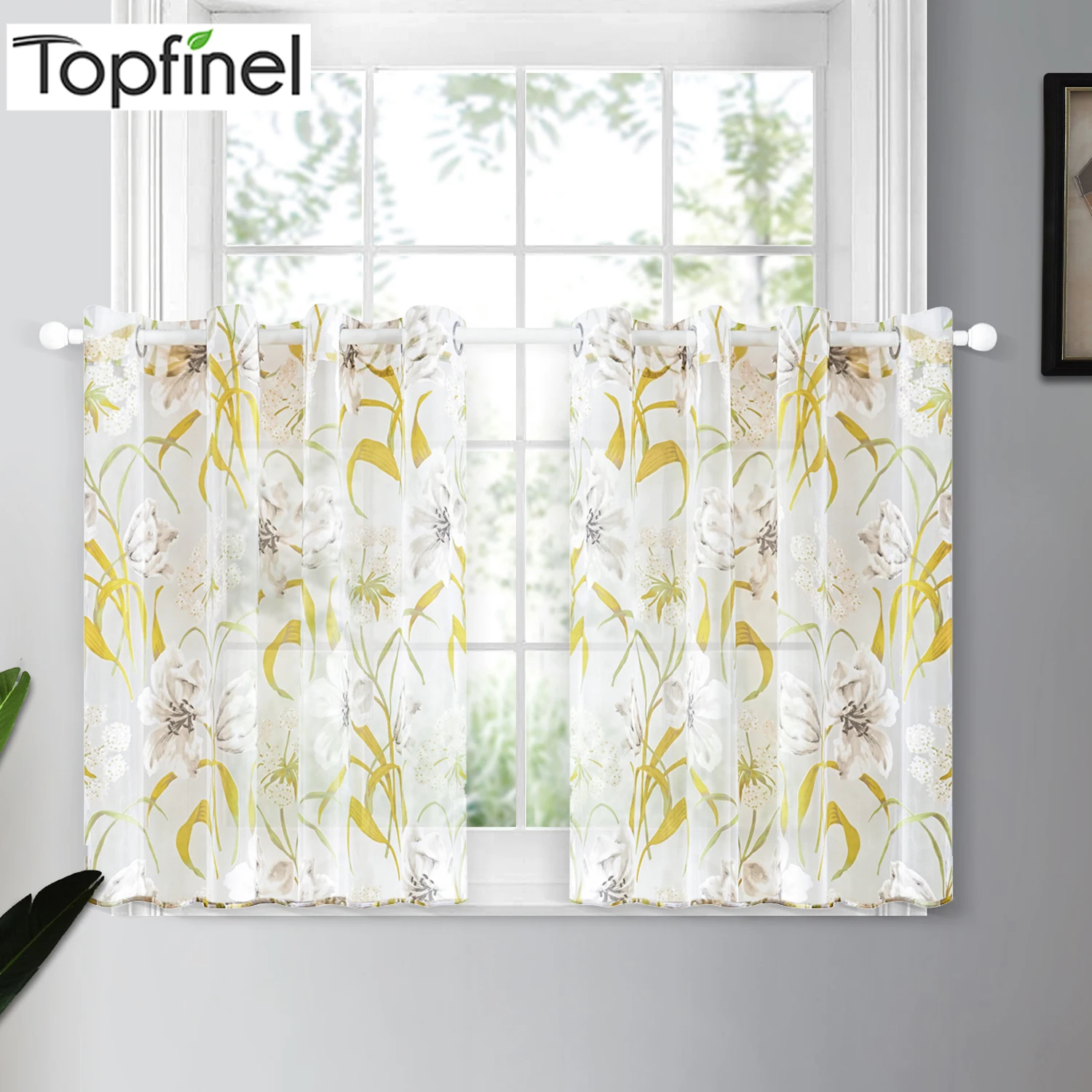 Topfinel Короткие Прозрачные шторы для гостиной кухня дверь ванной цветочный принт оконные дапировки шторы тюль готовые