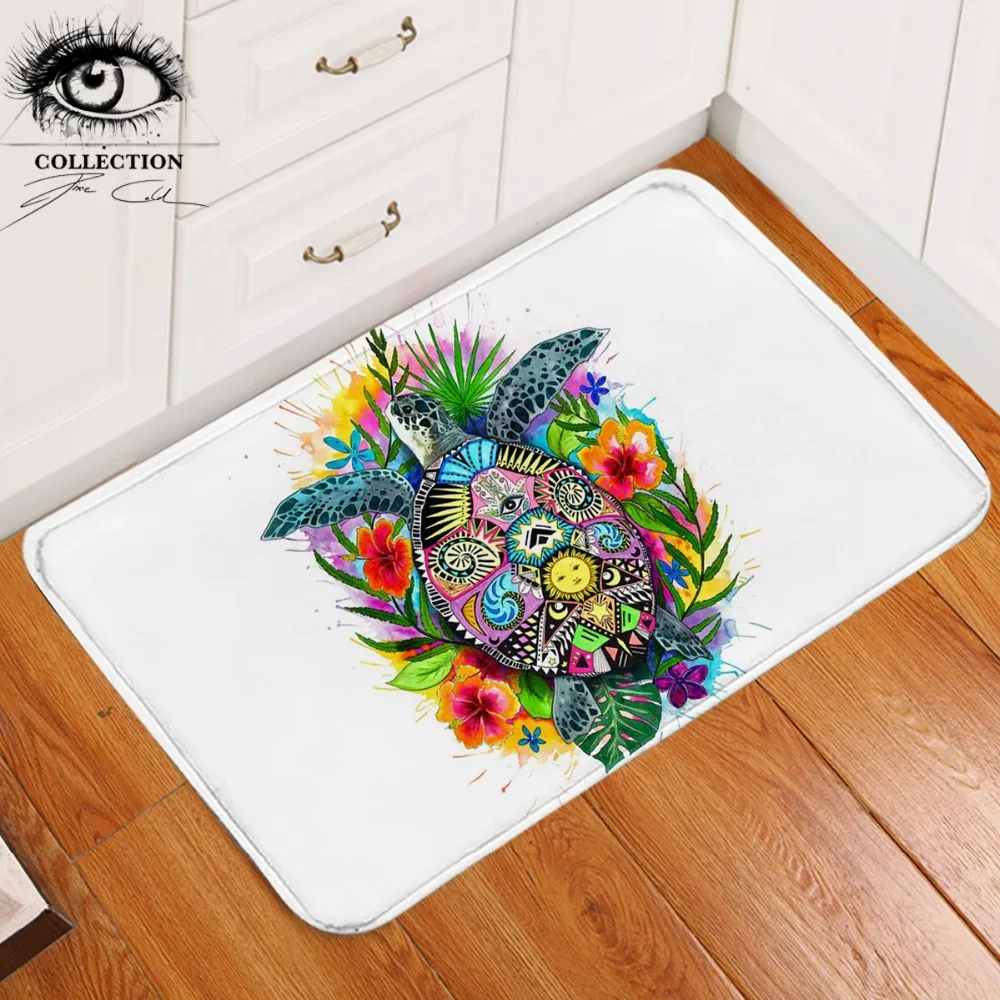 Черепаха жизнь по Pixie холодное искусство коврик нескользящий богемный коврик для ванной комнаты цветочный красочный Коврик для дома на отк...