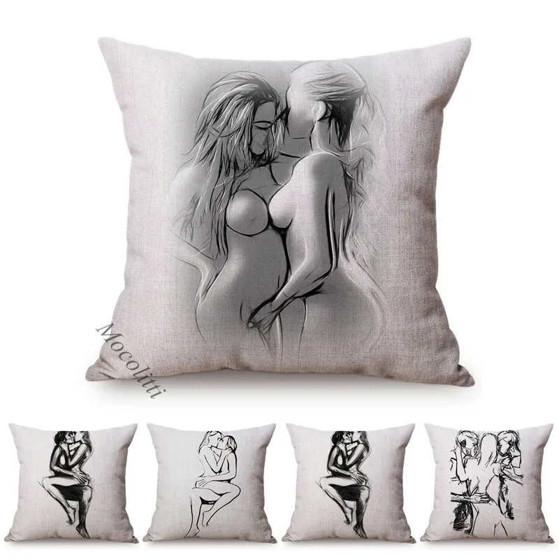 Эскиз Арт сексуальные девушки целуются дизайн украшения дома Пледы Подушки сексуальная женщина история любви хлопок белье Диван Наволочка