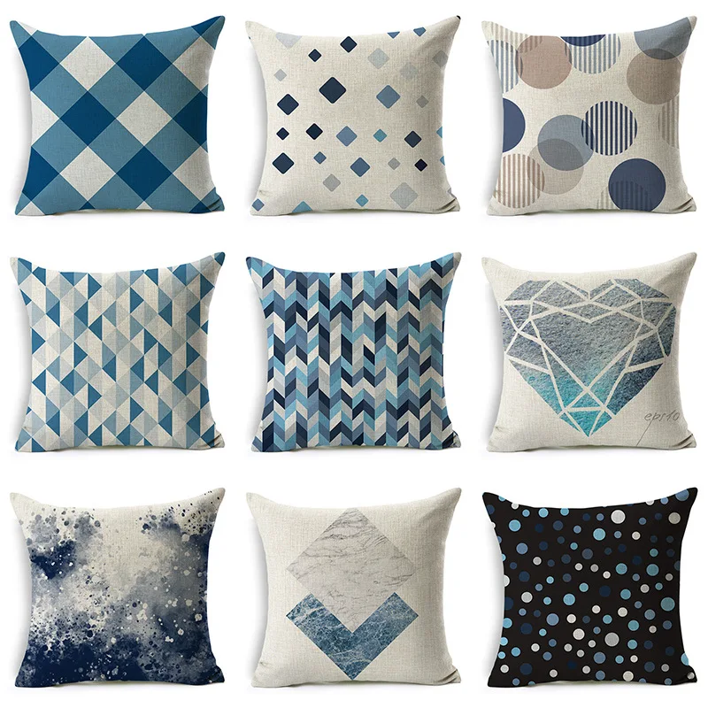 Новая простая синяя наволочка с геометрическим рисунком диван квадратная льняная подушки для дивана, чехол для подушки, подушки покрытие с...
