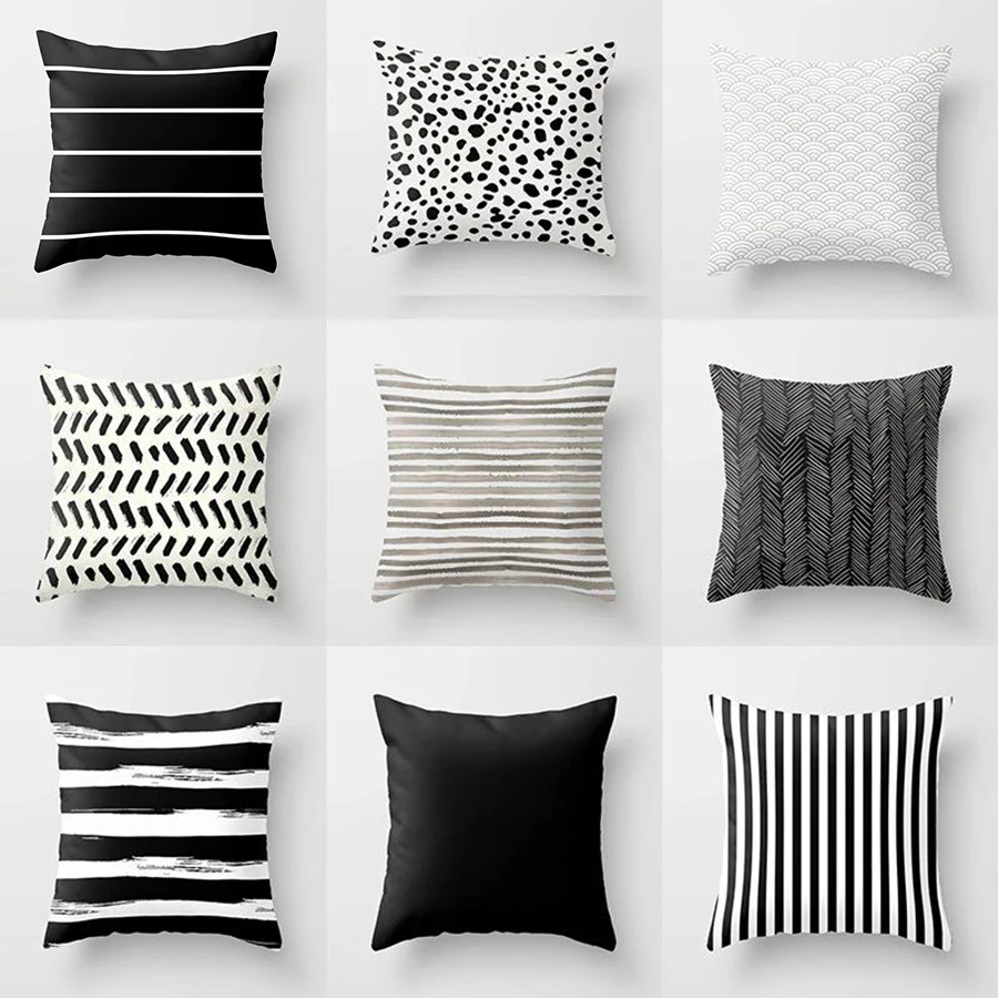 Черный и белый чехол для подушек, 18 дюймов, нордический кактус, полиэстер, геометрический чехол для подушек, квадратный чехол для дивана, автомобиля, талии, для дома, декоративный