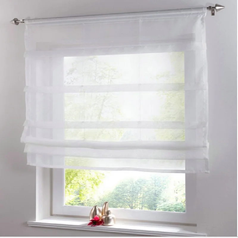 Короткая вуаль кухня шторы s Твердые Sheer Cortina шторы тюлевые скрининг панель для спальни оконные рамы лечения в римском стиле