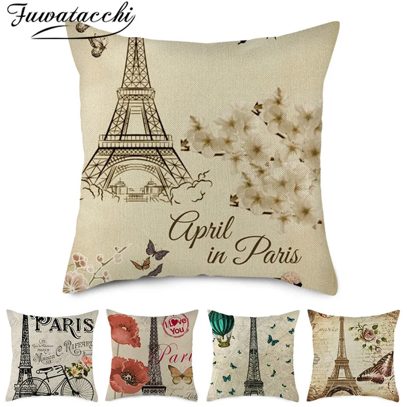 Fuwatacchi Эйфелева башня в Париже Наволочка Чехол Ландшафтная Подушка Чехлы принтованная льняная наволочка для украшения домашнего дивана