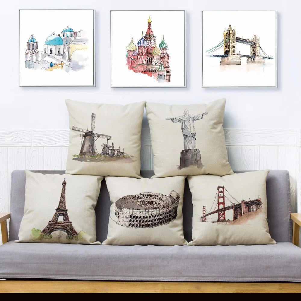 Классический эскиз здания Кристо Redentor принт Пледы Подушки Детские крышка 45*45 льняные Чехлы для подушек наволочки подушки для домашнего дек...