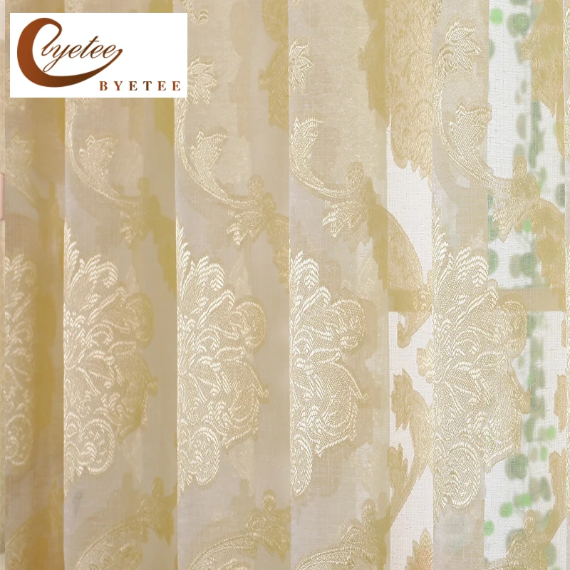 {Byetee} Jacquared желтый окна шторы s для гостиная Sheer Тюль в Кухня Двери Дешевые органзы одноцветное Cortinas