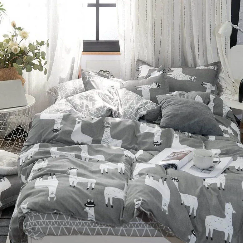 Милый комплект постельного белья из 4 предметов с изображением альпаки и фламинго для девочки, мальчика, ребёнка, набор пододеяльников для в...