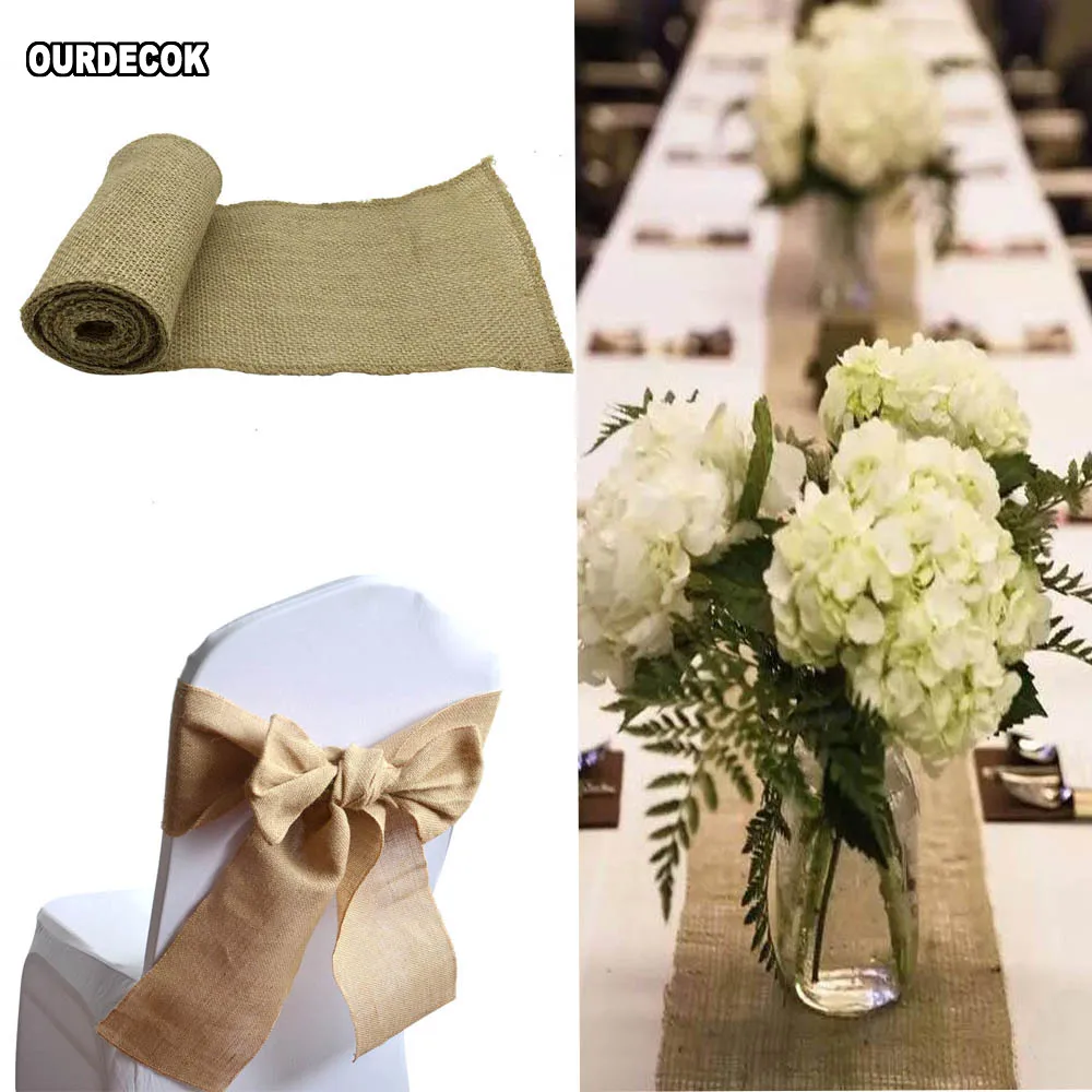 15*240 см мешковины ролл натурального джута Гессе мешковины стул лук Узкие скатерти для Свадебные украшения Винтаж дома вечеринок