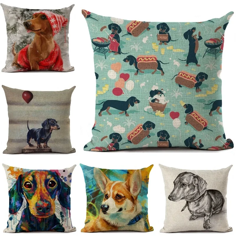 Наволочка для подушки такса Teckel с принтом из хлопка и льна, наволочка для подушки для автомобиля, дивана, декоративные подушки для дома, наволочка для подушки