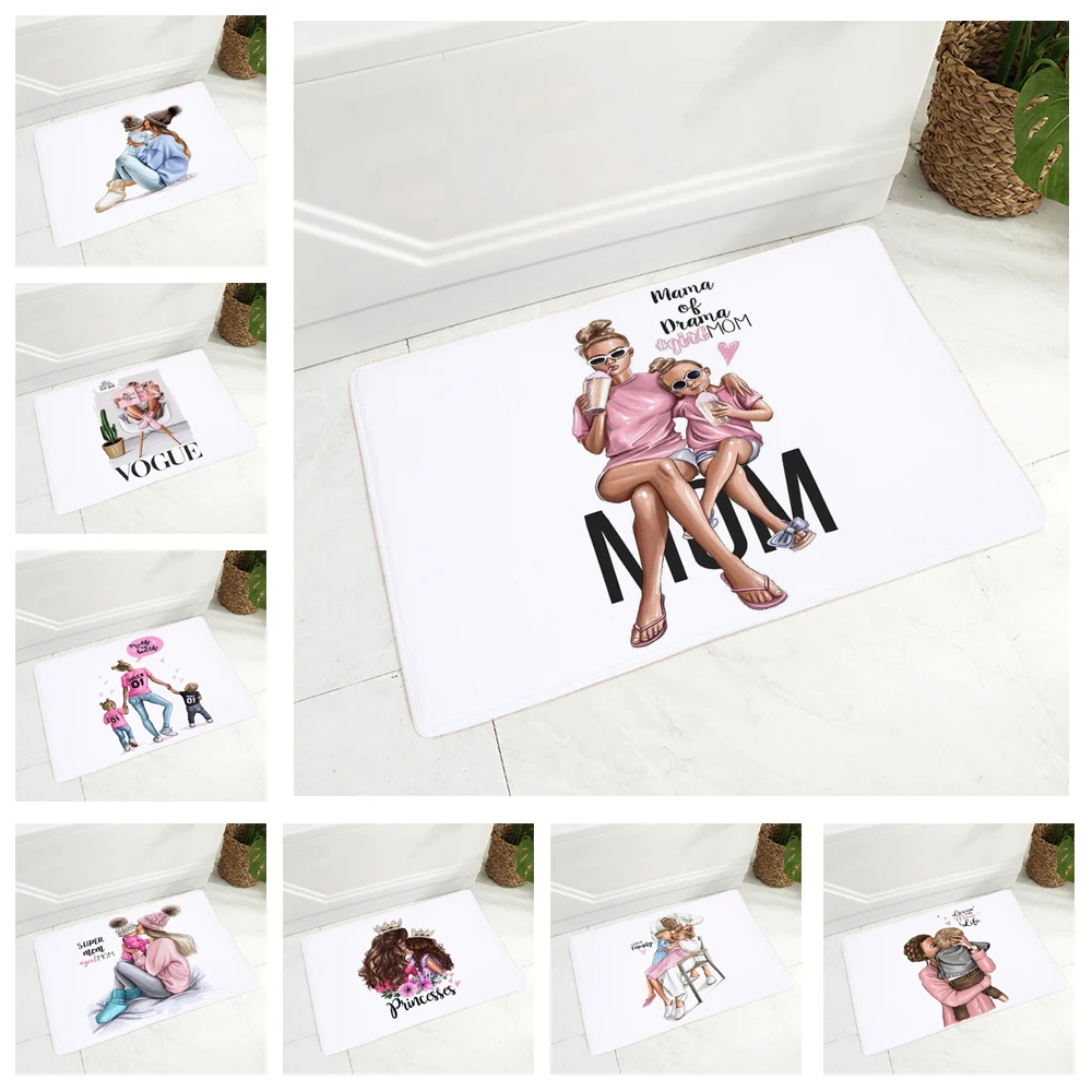 Милый мультяшный модный коврик для мамы и ребенка, для детской комнаты, прихожая, нескользящий декор, супер Mama, фланелевый ковер 40х60см