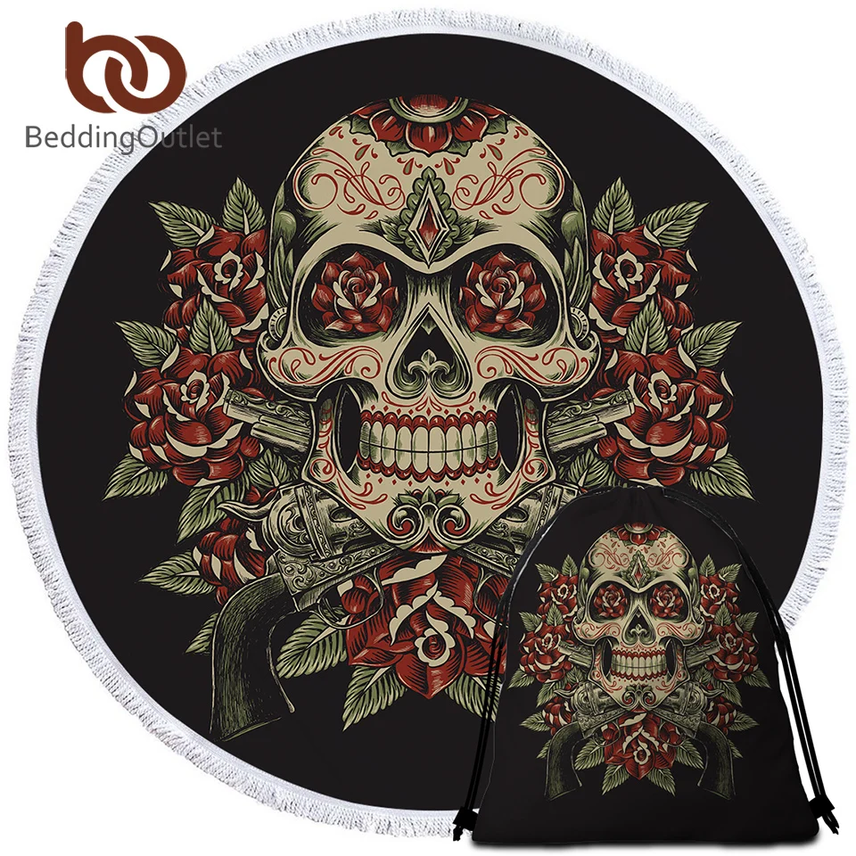 BeddingOutlet Цветочный Череп круглый пляжное банное полотенце из микрофибры Полотенца Готический Лето Toalla кисточкой Винтаж салфетку De Plage