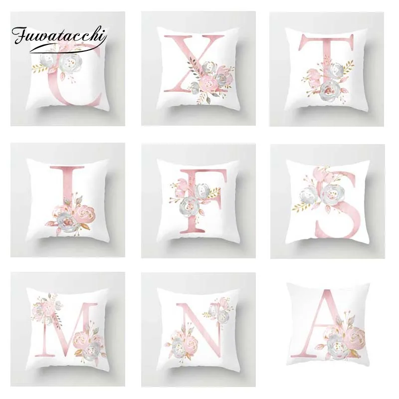 Fuwatacchi A-Z чехол для подушки с буквами розовый белый роз Бросить Наволочка декоративная подушка для дивана Чехол наволочки