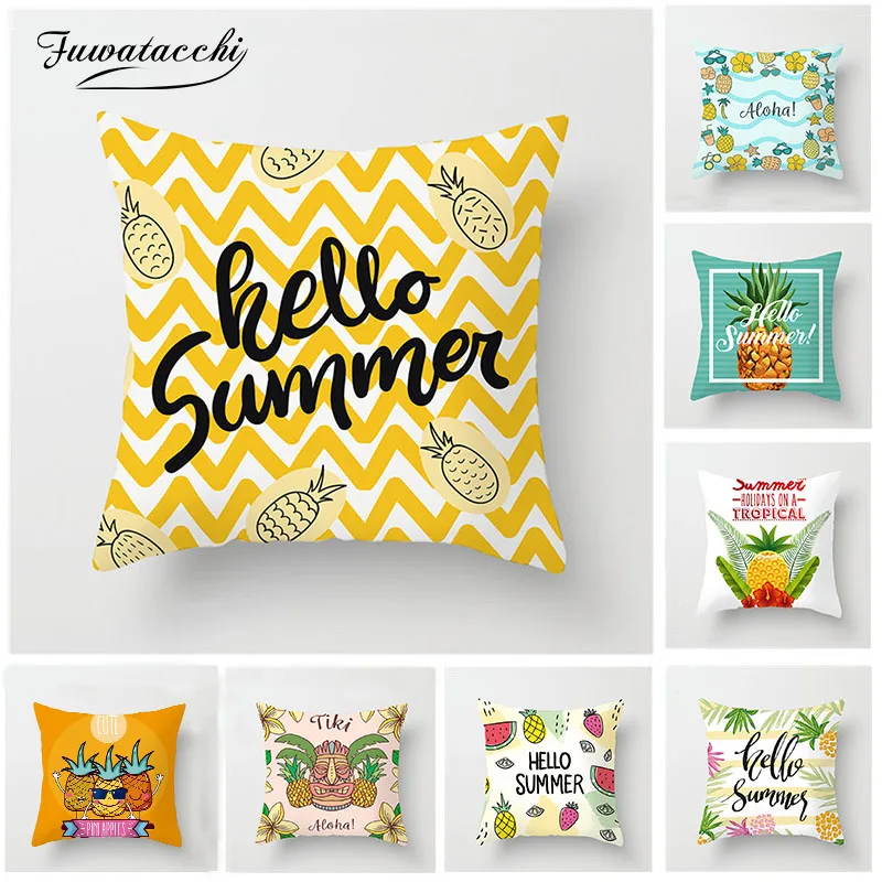 Fuwatacchi, тропическая подушка в виде фрукта, чехол с рисунком ананаса, наволочка для домашнего дивана, декоративные наволочки 45*45 см