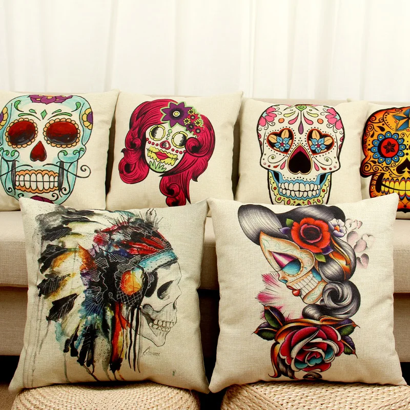 Мода череп головы Чехлы для подушек хлопок белье Декоративные Подушки Детские случае стул площадь 45x45 см Подушки Детские крышка дома живет ...