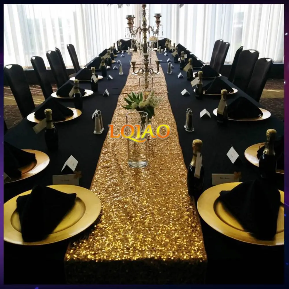 Оптовая продажа Роскошные цвета: золотистый, серебристый шампанское блесток Настольная дорожка Свадебная вечеринка Украшение стола одноц...
