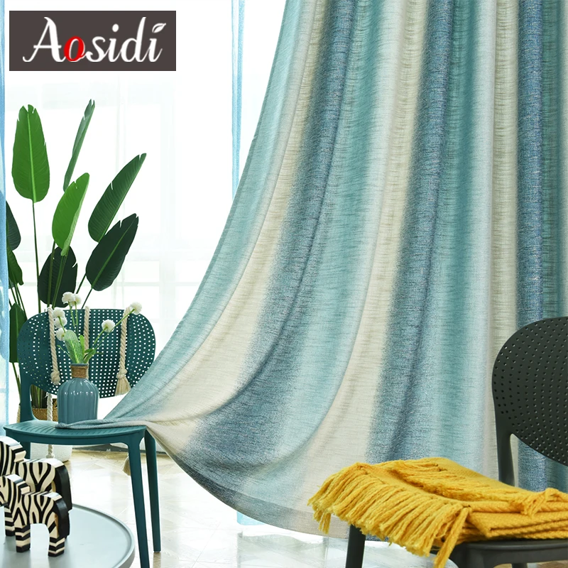 Градиентные льняные шторы для гостиной, окна, радужные полосатые шторы для спальни, детские шторы, 80% затемненная ткань