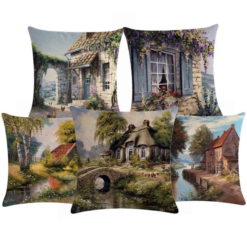 Страна пейзажи маслом печати Чехлы белье хлопок Гостиная украшения сада бросок наволочка