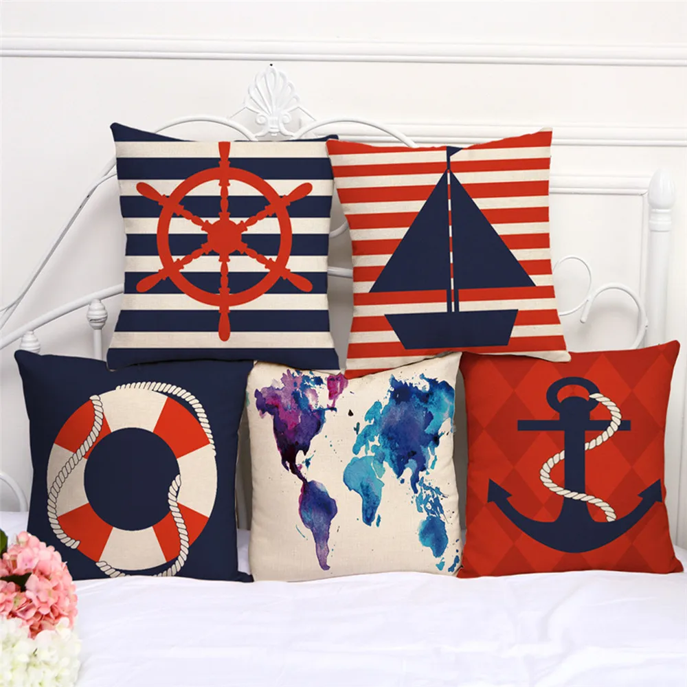 Скандинавский навигационный чехол с изображением карты мира, наволочка с изображением якоря, руля, красная наволочка для дивана, дома, Капа de almofadas 17,7 "x 17,7"