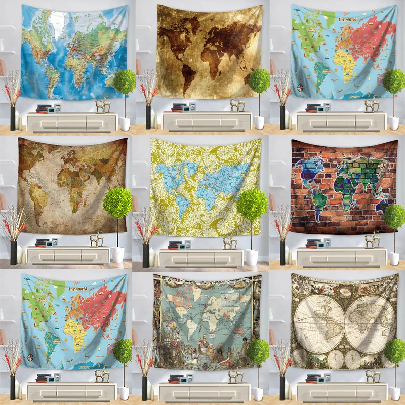 Карта мира шаблон настенный гобелен Настенное подвесное одеяло фермерский дом украшения дома машина импраймер Сур тиссу потертый шик