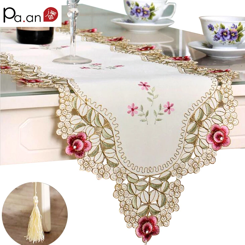 Пасторальный стол с вышитыми цветочными листьями, полый полиэстер, покрытие для стола, пылезащитный стол, Декор для дома, вечерние, свадебные, Pa.an