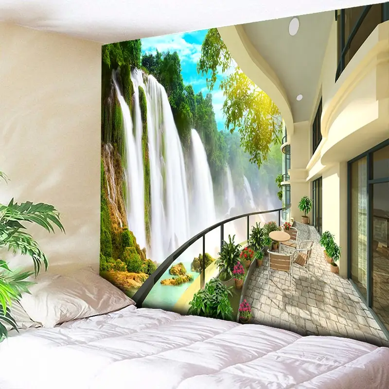 3D водопад гобелен природа горы индийская МАНДАЛА ГОБЕЛЕН настенный гобелен Бохо спальня настенный ковер Диван Одеяло 3 размера