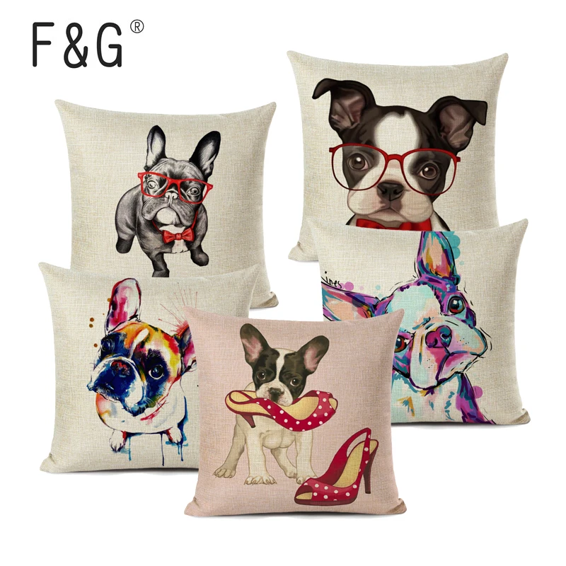 Французский бульдог мопса Подушка Чехол милый мультфильм собака наволочка с принтом 45 см x 45 см хлопок лен диван домашний декор наволочки