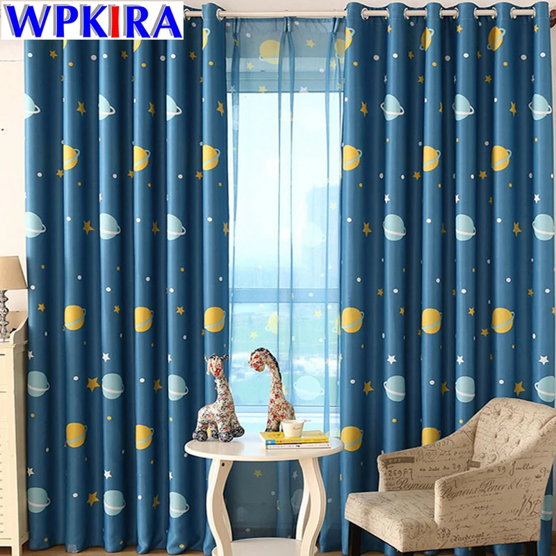 Мультфильм синий шторы с планетами Гостиная индивидуальный заказ плотные детские детская одежда ткани для мальчиков Спальня Шторы WP355-30