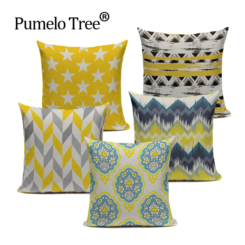 Заказные подушки Желтый предмет декора с геометрическим рисунком пледы подушки Чехол Высокое качество Творческий украшения Лен для дивана...