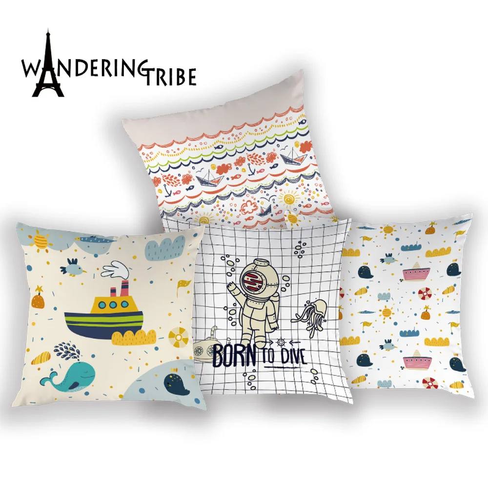 Мультяшная узорная Подушка покрывает морскую жизнь подушки для дивана подушка в форме Кита декоративная кровать 45X45 см милые животные поду...