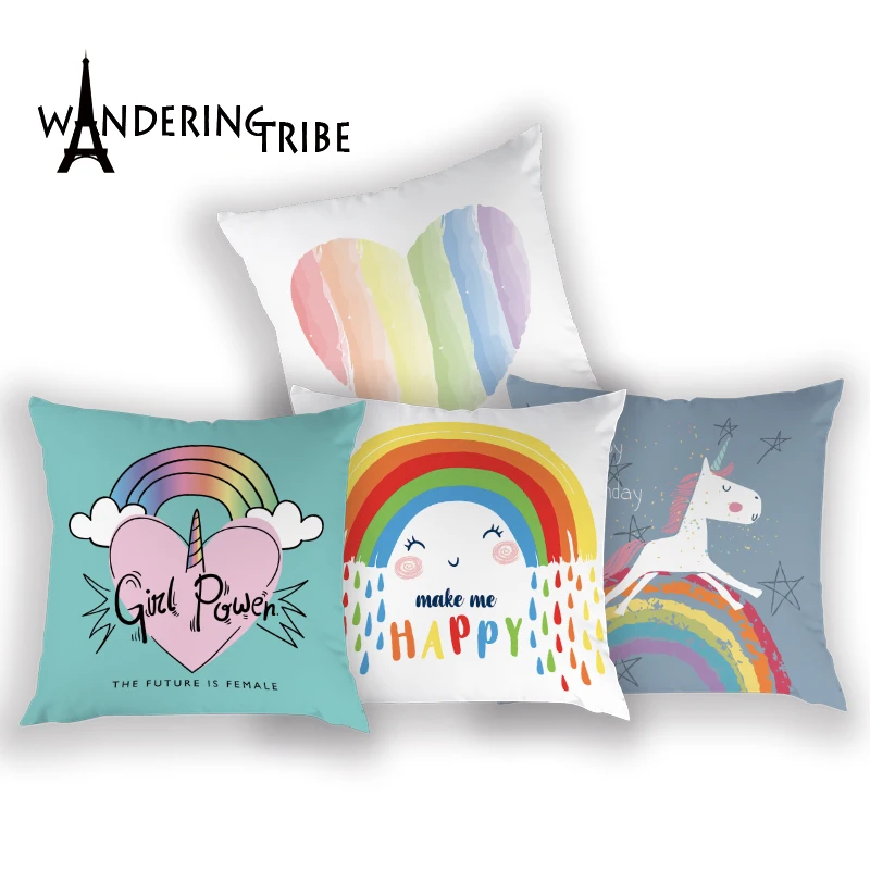 Нордическая Подушка Радужная подушечка Чехлы Подушка с изображением единорога для стула Мультяшные наволочки простая фермерская Декорати...
