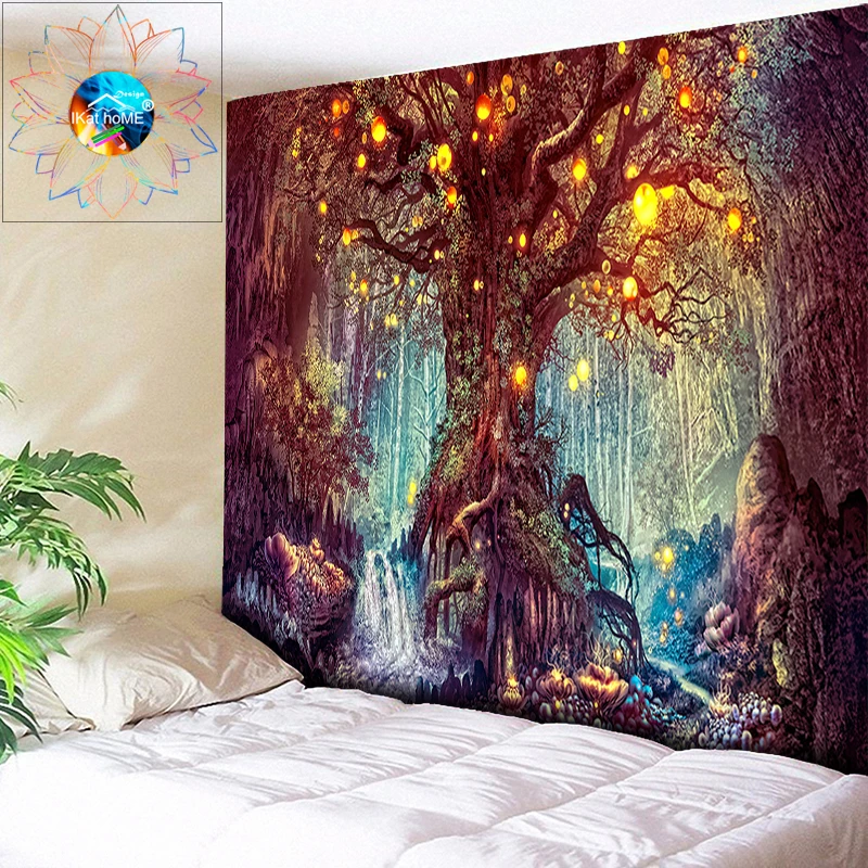 Большой гобелен с изображением деревьев, настенный психоделический лес, настенный гобелен, богемная индийская мандала, хиппи, гобелен для спальни, настенное искусство