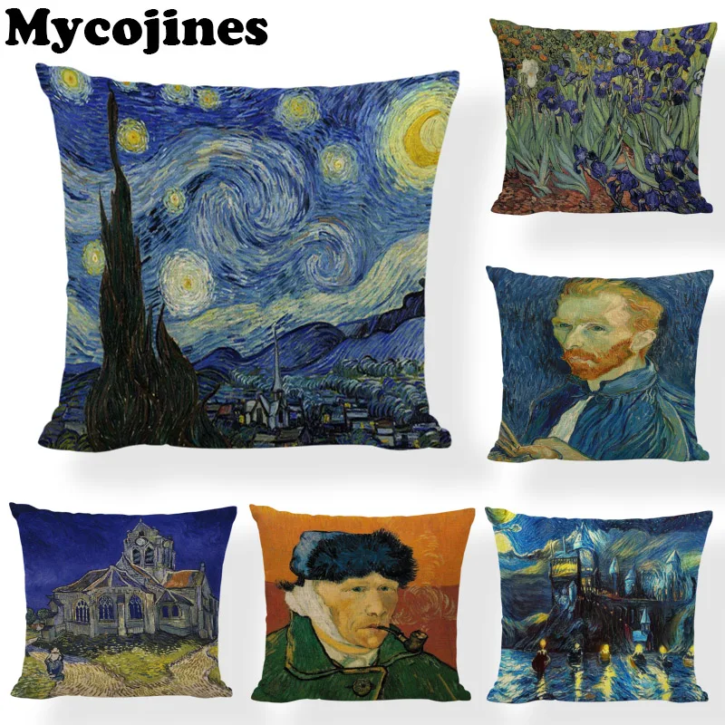 Известный живописец Ван Гог Подушка с портретном Cover45x45cm звездное небо дом цветок домашний диван декор гостиной подарок льняная наволочка