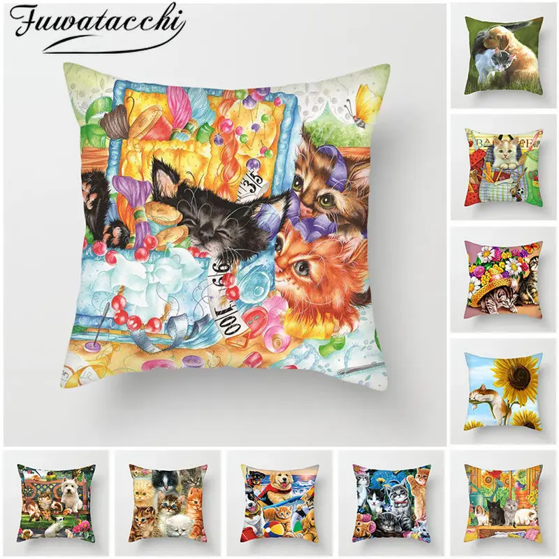 Fuwatacchi чехол для подушки, домашний декор, автомобильная наволочка, диванная подушка, наволочки, животные, коты, декоративные украшения для оф...