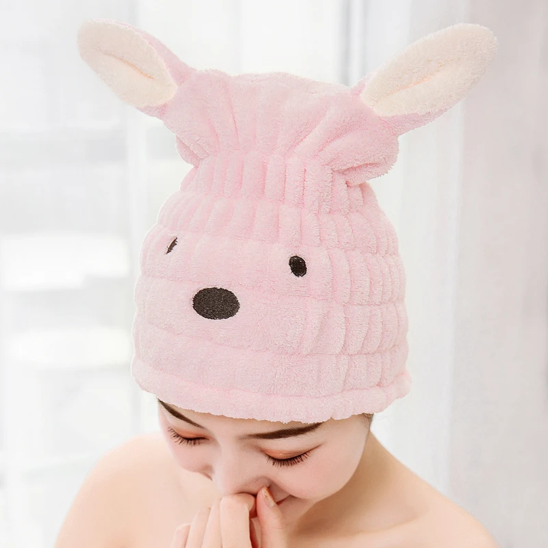 Быстросохнущее полотенце для волос с рисунком животных из мультфильмов, быстросохнущее полотенце с капюшоном, Женская милая шапочка для ду...