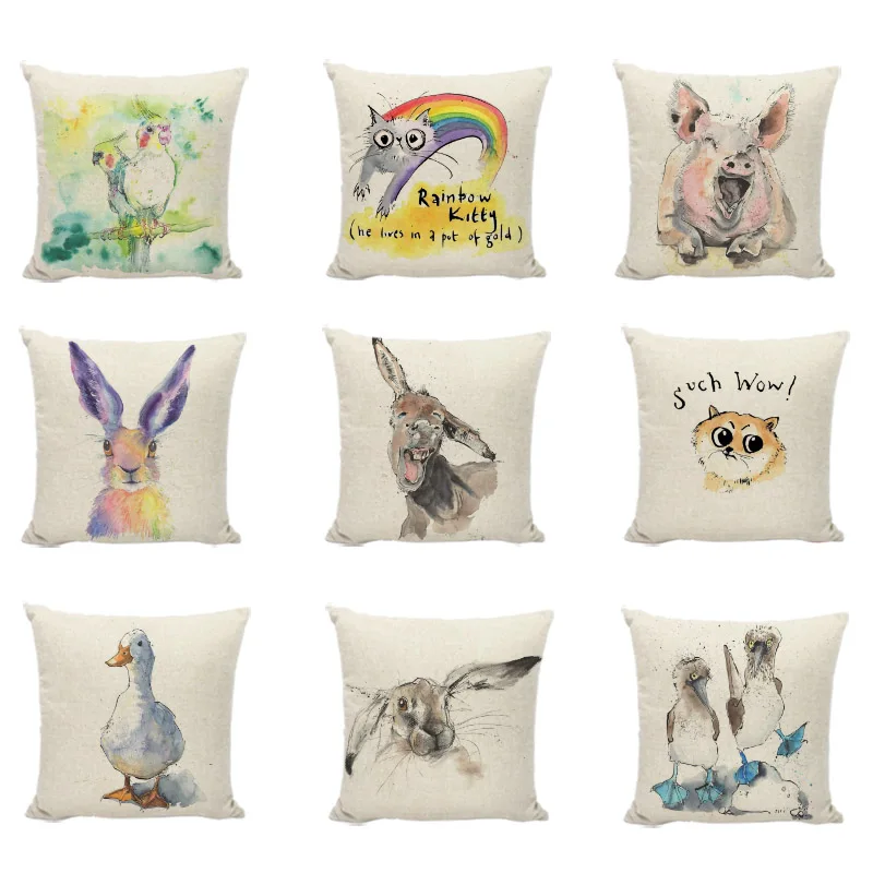 Лидер продаж Ослик свинья Чехлы для подушек масло с принтом льняные домашние декоративные утка кролик наволочки детский Цвет Кролик наволо...
