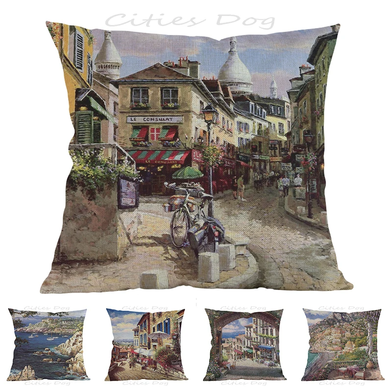 Европейский Стиль Париж Монмартр Живопись Искусство 45*45 см квадратный наволочка чехол для подушки барный диван наволочки