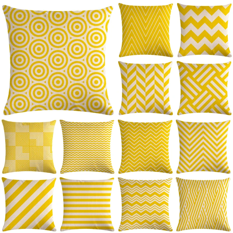 Желтый геометрический декоративная подушка для дивана Подушка Наволочка льняная 45*45 бросить Подушка, домашний декор Pillowcover 40609