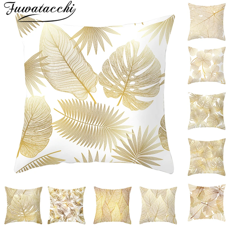 Fuwatacchi Золотая цветы Подушка с принтами листьев крышка клевера Пледы Подушки чехол для дома Диван Декоративные подушки для стульев 45*45 см
