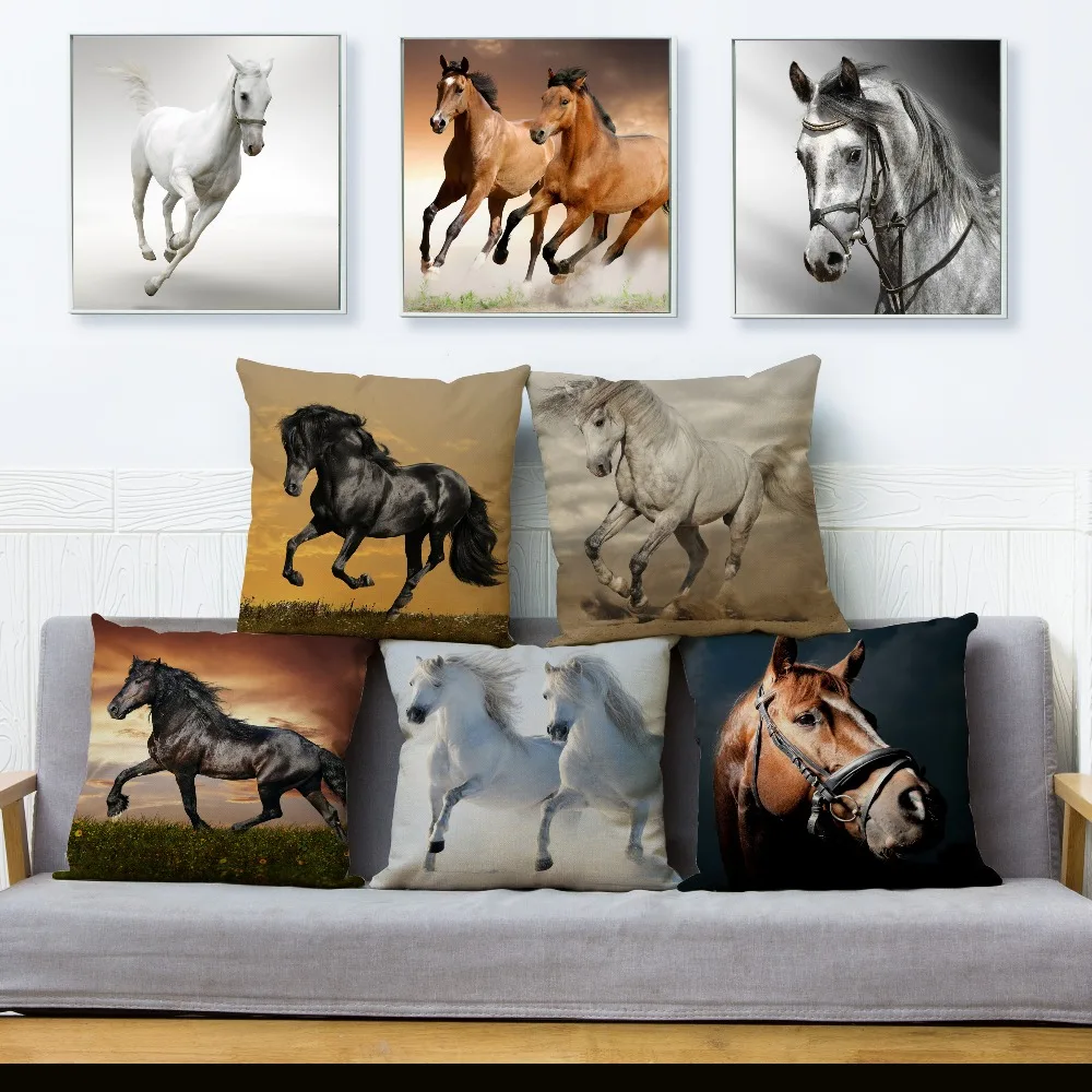 26 стилей, чехол для подушки с принтом лошади, бежевый льняной чехол для подушки 45*45 см, квадратная подушка, чехлы для автомобиля, дивана, дома...
