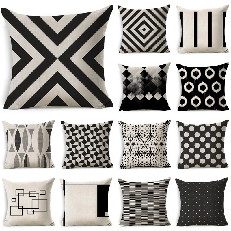 Черно-белая хлопковая льняная наволочка с геометрическим узором, Наволочка на диван-кровать для дома, декоративная наволочка Funda Cojin 40198