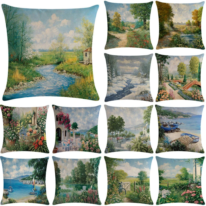 1 шт., живописный цветочный узор, хлопок, лен, декоративная наволочка для подушки, чехол для автомобиля на диван-кровать для дома, декоративна...