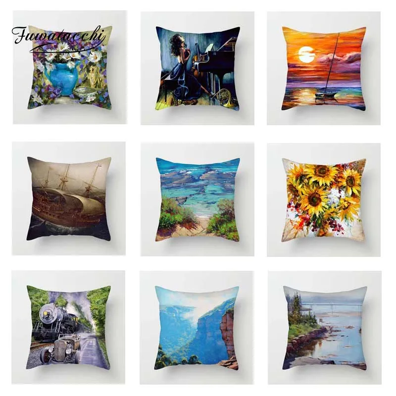 Fuwatacchi картина маслом наволочка с цветами парусник подушки для растений чехол для диван-кресло Декор подсолнечника наволочка с изображение...