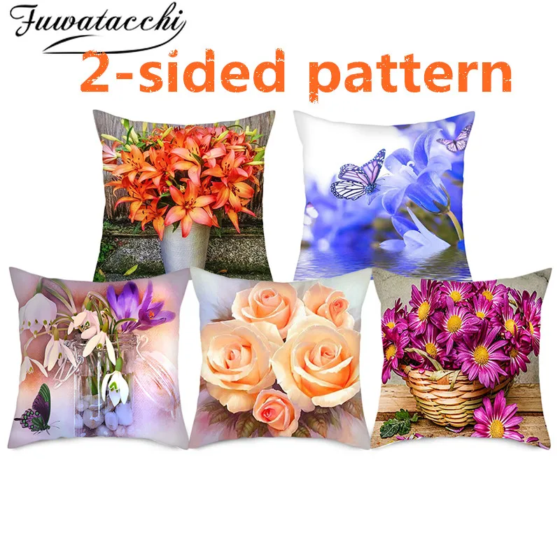 Fuwatacchi акварель наволочка с цветочным рисунком узором из цветов и листьев, скидка, накидка для подушки для дом, автомобиль, диван украшение к...