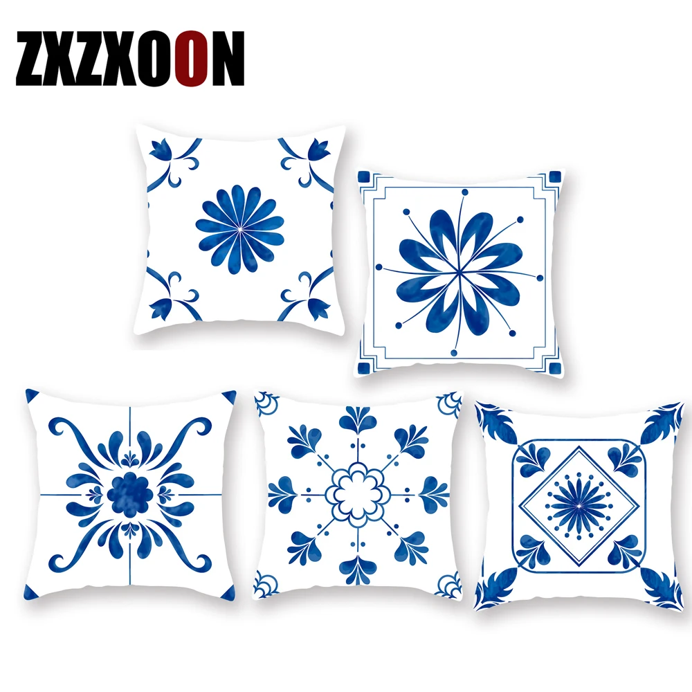 Декоративные подушки, Наволочки, синий и белый фарфор, Геометрическая мандала, бохо, диван, домашний декор, наволочка для сиденья