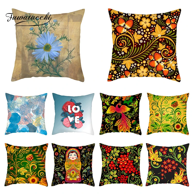 Fuwatacchi русские Цветочные подушки с принтами Love подушки Чехол полиэстер наволочка для дома диванные декоративные подушки 45*45