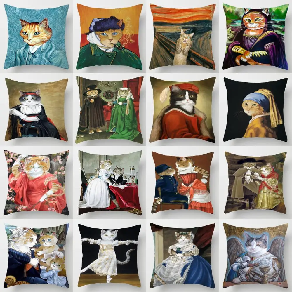 ZENGIA Винтаж чехол для подушки с кошкой размером 45*45 см Ван Гог, рисунок с котом подушка для дивана декоративные подушки, домашние декоративны...