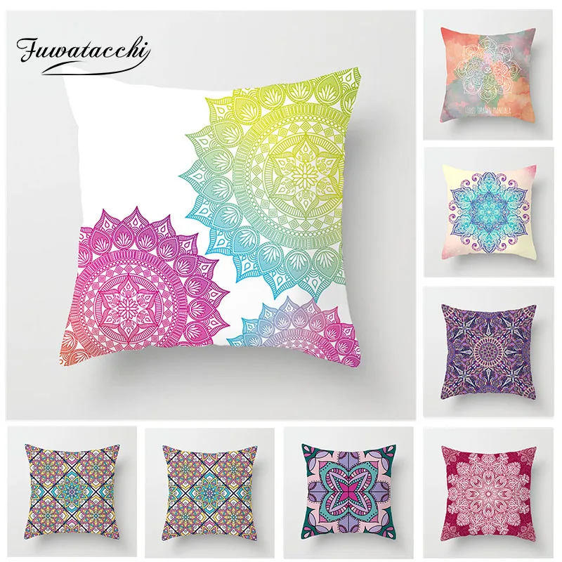 Разноцветный чехол для подушки Fuwatacchi с изображением мандалы, наволочка с цветком, декоративная подушка для дома, розовая, желтая, красная, квадратная наволочка для дивана