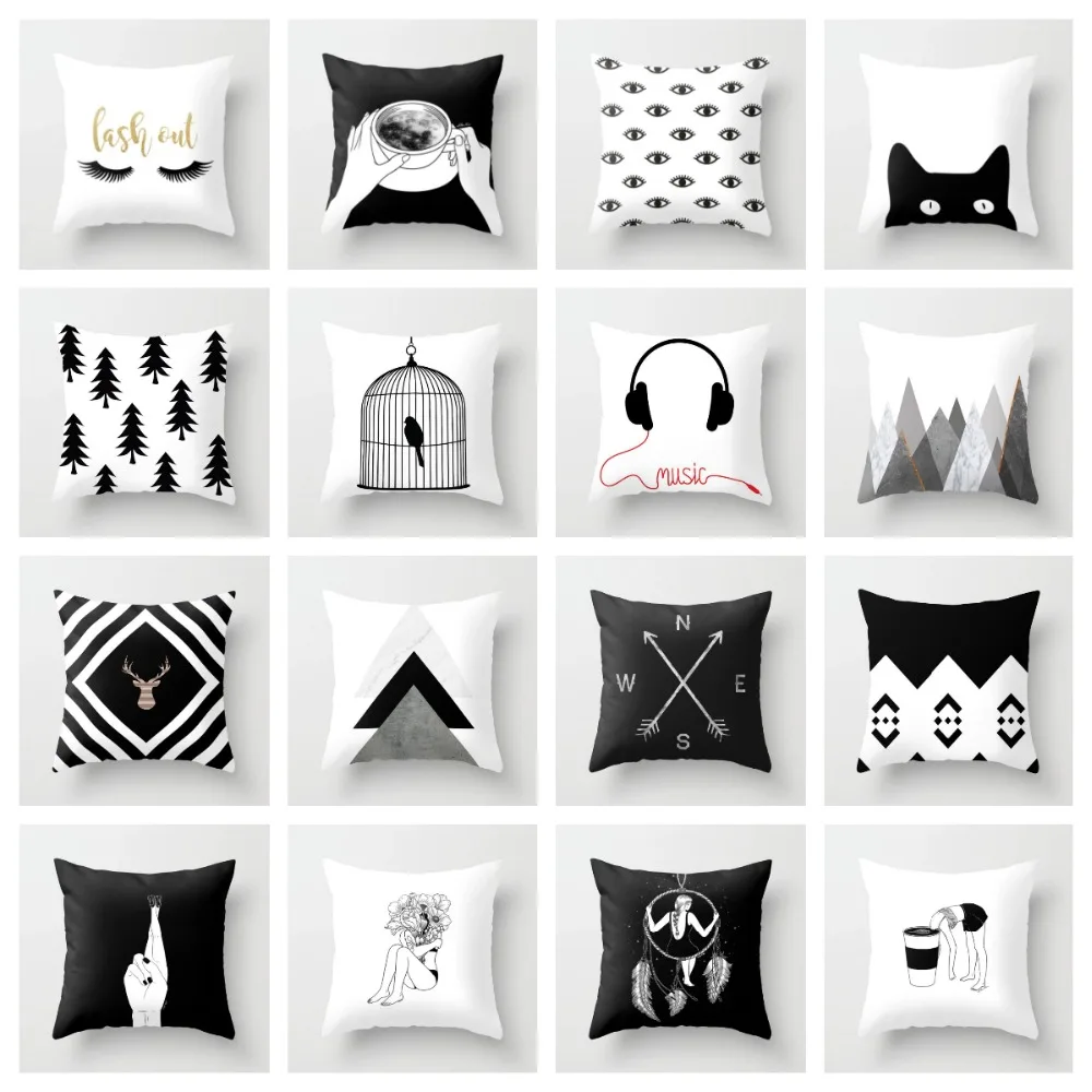 ZENGIA геометрический Чехлы для подушек черный и белый полиэстер пледы наволочки дома декоративные 45x45 см модные наволочка в скандинавском ст...