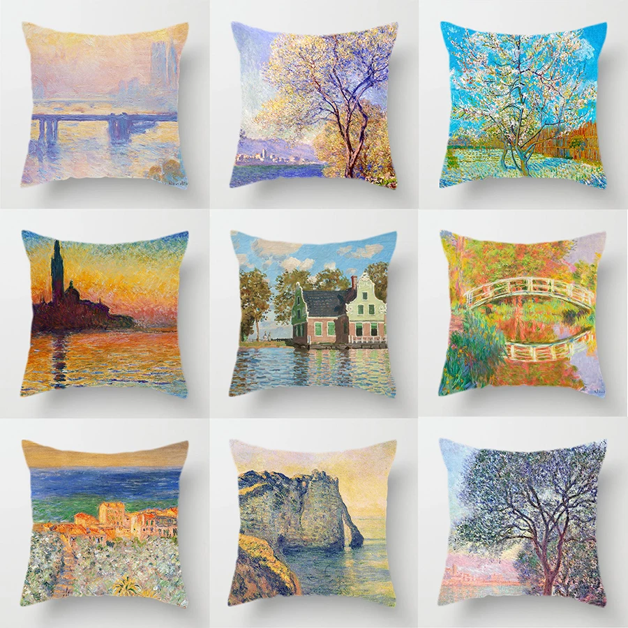 Наволочка из полиэстера с принтом Клода монета, наволочка для дивана, пейзаж, всемирно известная картина маслом, декоративная наволочка, чехол для подушки, домашний декор