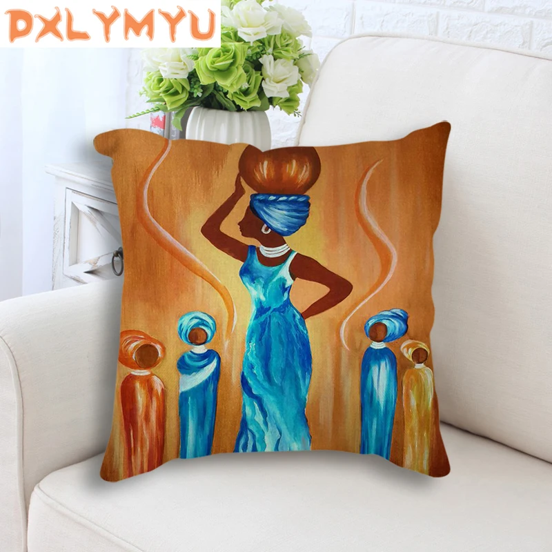 Декоративные подушки назад чехол Африканской жизни напечатанная картина маслом наволочка диван льняная, хлопковая, декоративная наволочк...