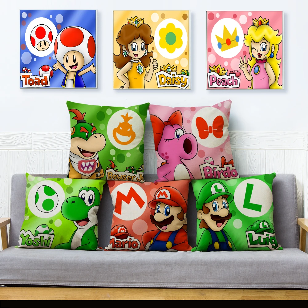 Супер Марио льняные Чехлы для подушек наволочка машина диван домашний декор Классическая игра с яркими рисунками из мультфильма про диноза...
